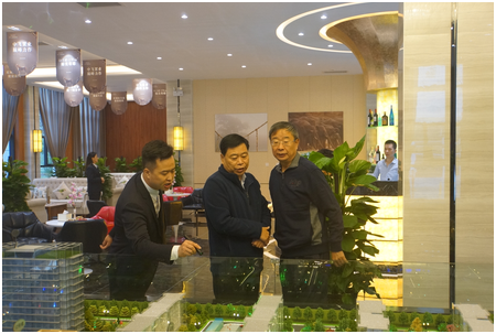 中國飛行試驗(yàn)研究院黨委書記宋躍進(jìn)(右一)和華原控股有限公司總裁魏進(jìn)民(右二)聽取項(xiàng)目介紹