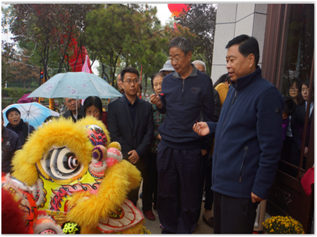 中國飛行試驗(yàn)研究院黨委書記宋躍進(jìn)(右二)和華原控股有限公司總裁魏進(jìn)民(右一)為舞獅點(diǎn)睛